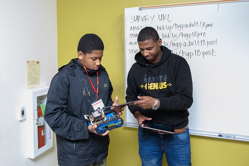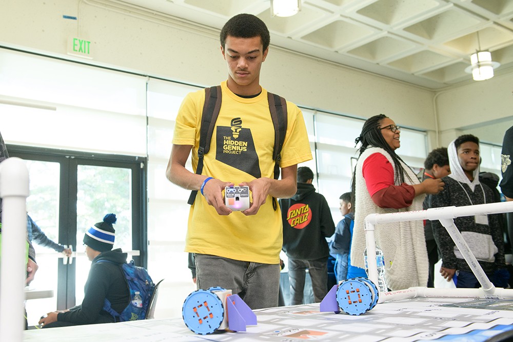 In celebration of National Computer Science Education Week, we hosted our 6th Annual Brothers Code event, in partnership with Kapor Center and sponsored by Kaiser Permanente and Stripe. More than 100 participants joined us at Merritt College for a full day of innovative programming. This year’s event marked a milestone for our Hidden Genius Alum as ALL workshops and activities were facilitated by our Youth Educators. Congratulations to our Geniuses for this achievement!