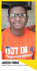 Jaheem Finnie, Oakland Cohort 4 Hidden Genius Alum, experienced many ‘firsts’ in the program. From taking public transportation on his own to learning how to code, Jaheem shares how he grew both personally and professionally while participating in our Intensive Immersion Program. Along the way, Jaheem found his calling of becoming a video game developer while visiting Electronic Arts headquarters on a business trip where he was “blown away.” Now inspired more than ever, Jaheem is majoring in Computer Science at Virginia State University and is laser-focused on becoming a programmer in the gaming industry.