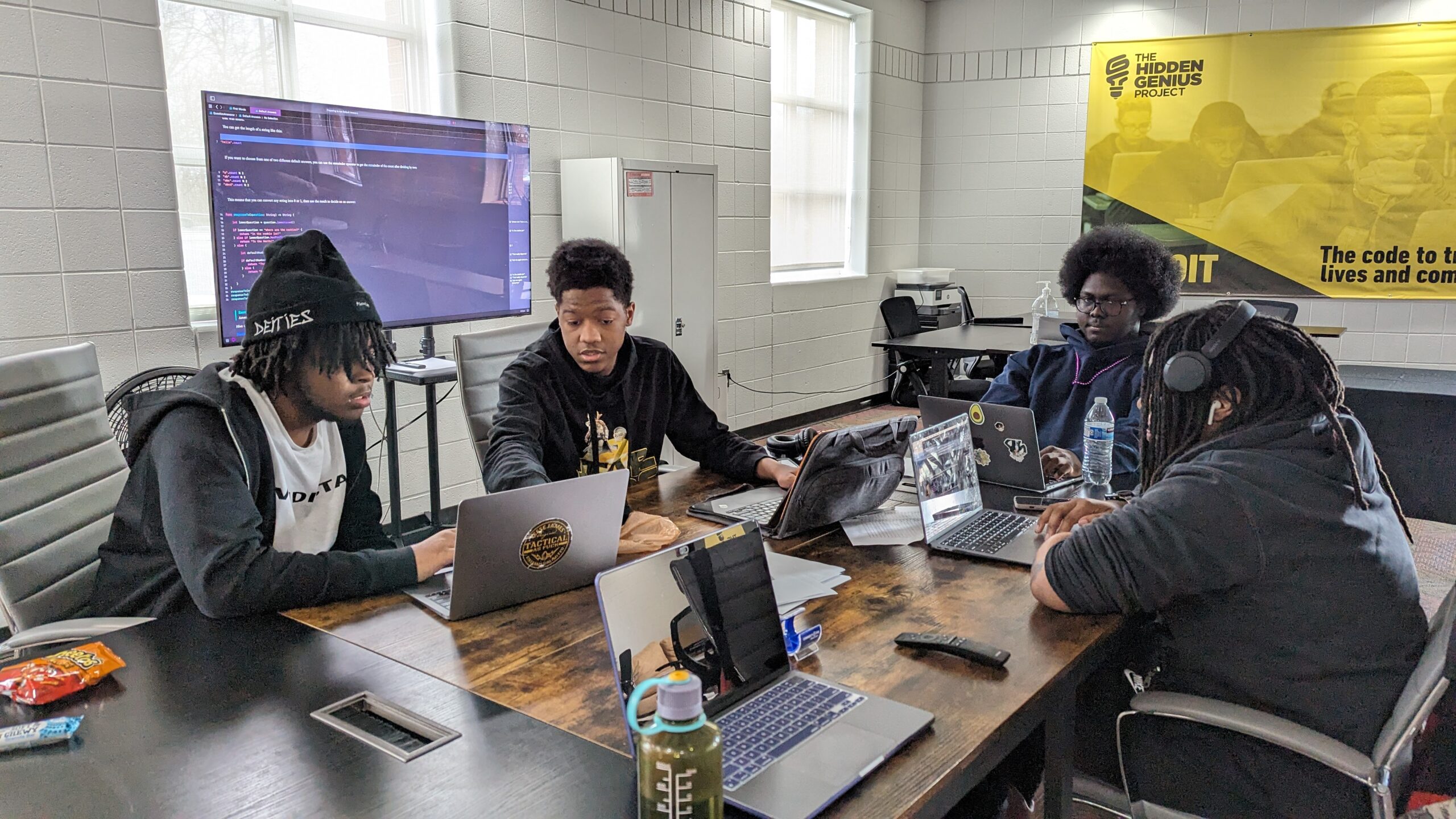With the support of the Apple Foundation, The Hidden Genius Project hosted a seven-week coding program using their Swift programming language. In this specialized program, our Youth Educators participated in a series of guided lessons to build their own rock, paper, scissors game and a boogie bots which combined various programming logic concepts including functions, instances and methods.